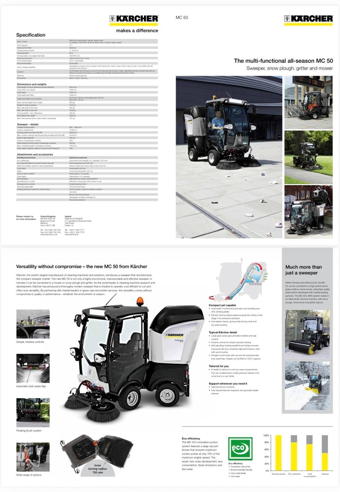 Endüstriyel ve kentsel temizlik ihtiyaçlarına yönelik yüksek performans sunan Kärcher MC 50 süpürge araçlarımız satışa sunulmuştur. Fabrikalar, siteler, oteller ve belediyeler için ideal kullanım imkânı sağlayan bu makineler, kompakt yapısı ve güçlü temizlik performansı ile öne çıkmaktadır.